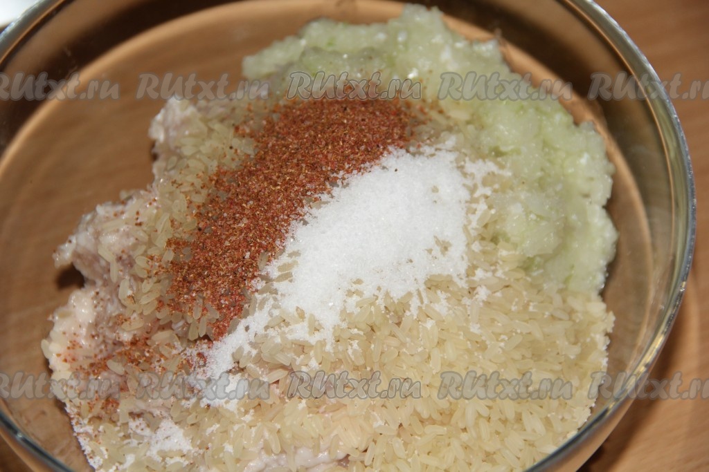Хорошо вымесить фарш с рисом и специями.