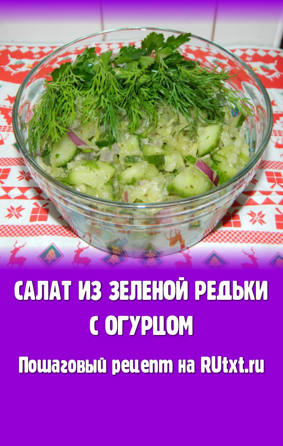 Редька - полезный овощ, в котором содержится много витаминов. Но из-за специфического запаха многие отказываются от неё, а зря, ведь в редьке есть своя "изюминка". Предлагаю вам простой рецепт салата из зеленой редьки с огурцом, который хорошо подходит к блюдам из картошки.