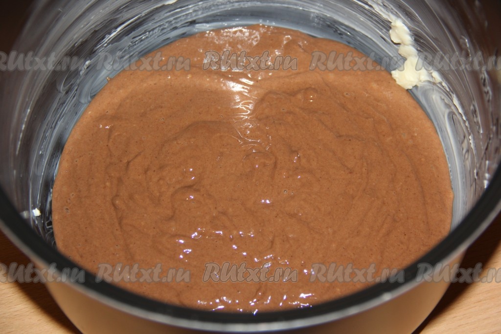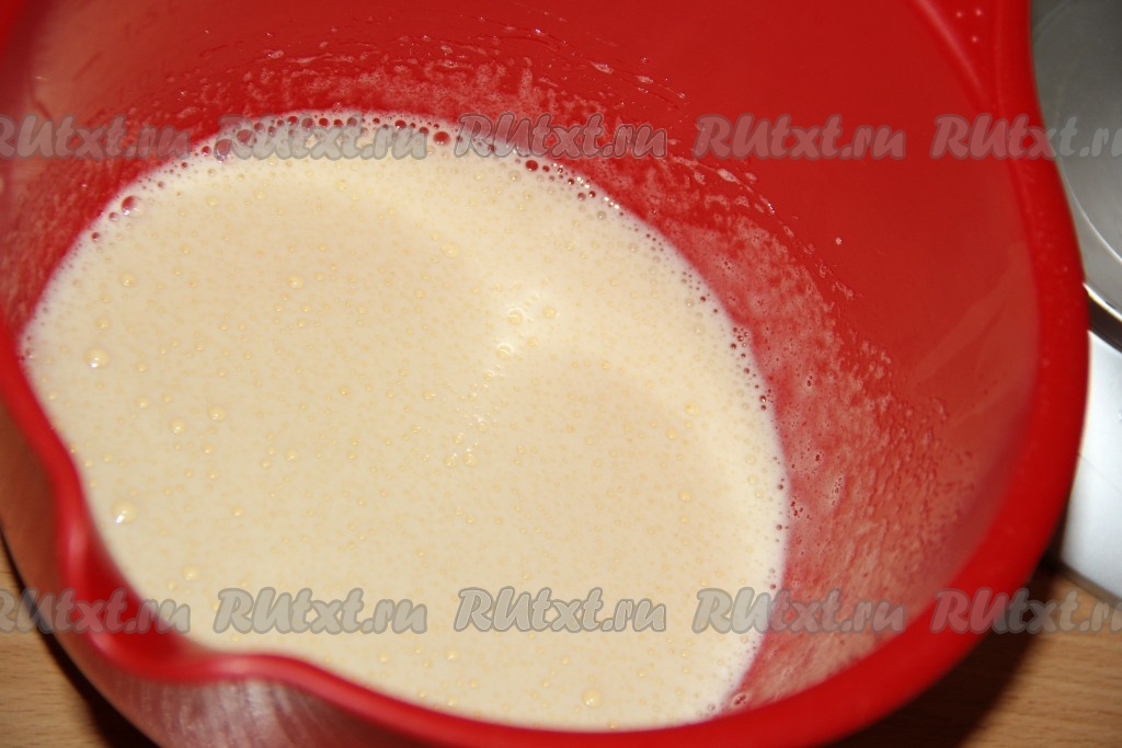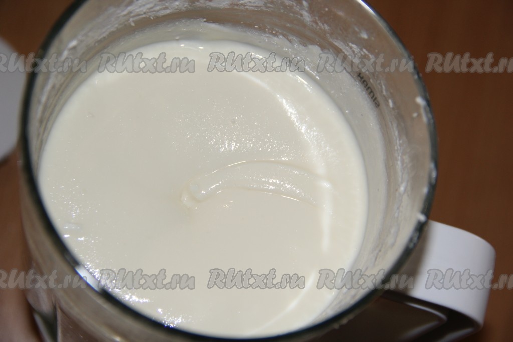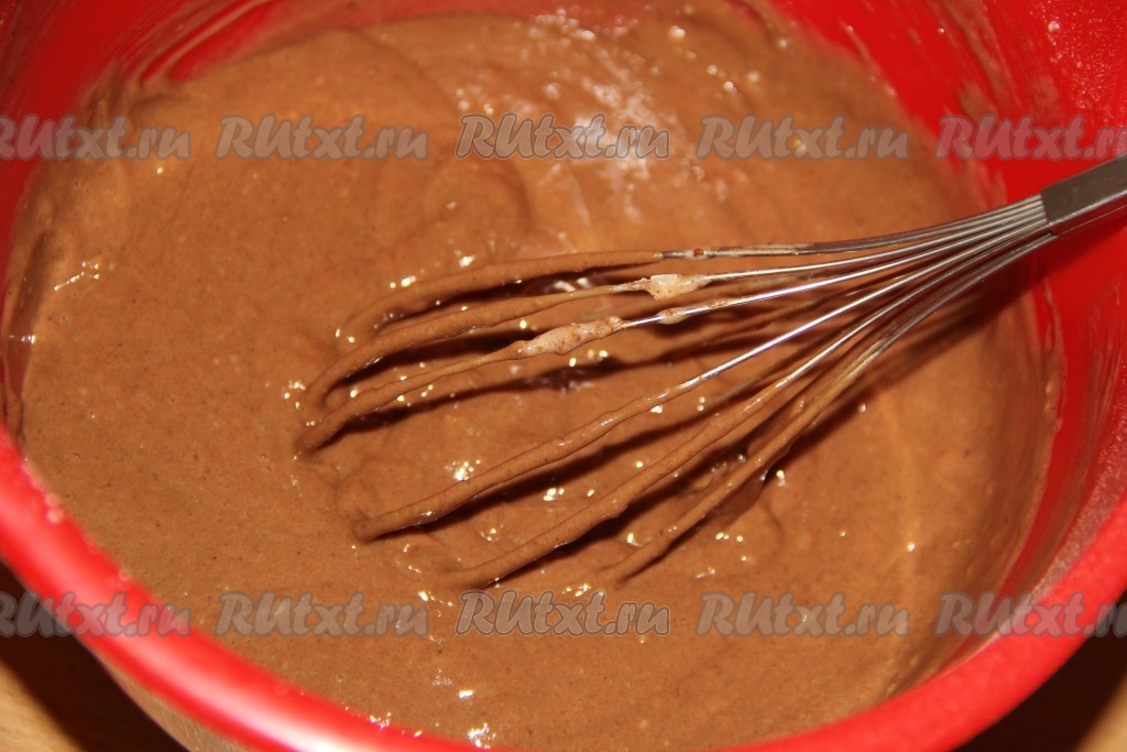 Перемешать тесто венчиком до однородного и гладкого состояния. Тесто получится в меру густым, напоминающим сметану средней густоты.