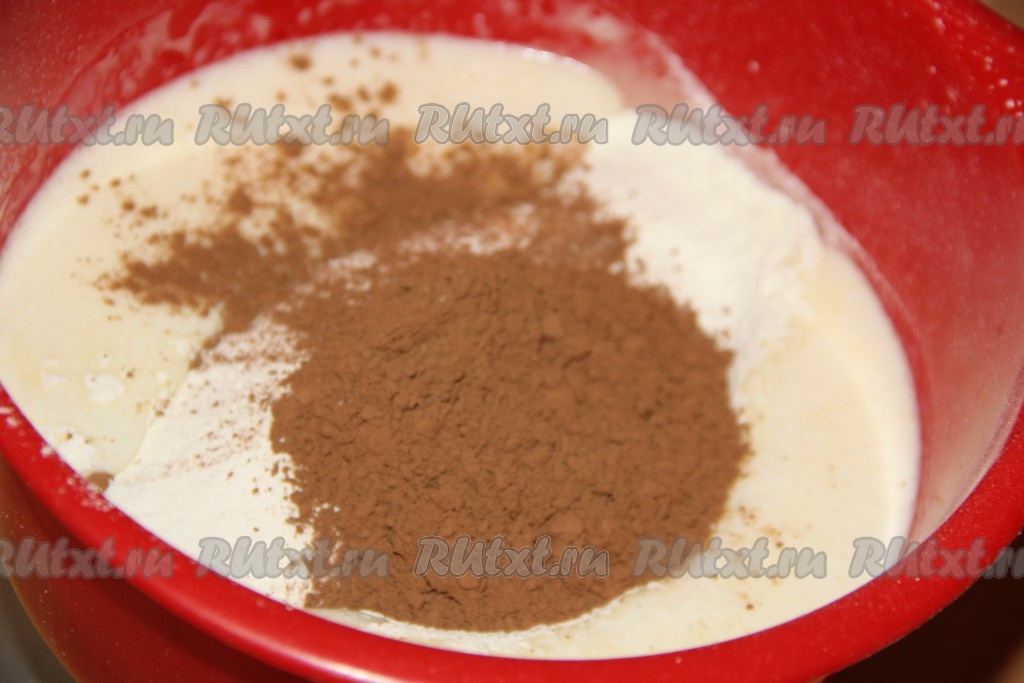 Всыпать просеянную муку и какао.