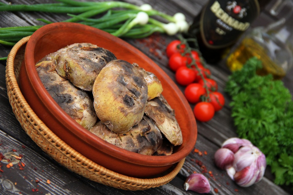Готовить картошку, примерно, 20 минут, но время запекания зависит от жара углей вашего мангала и от сорта картофеля. Готовность можно проверить зубочисткой (вилкой или ножом), если зубочистка входит в клубень без усилия, то картошка готова.