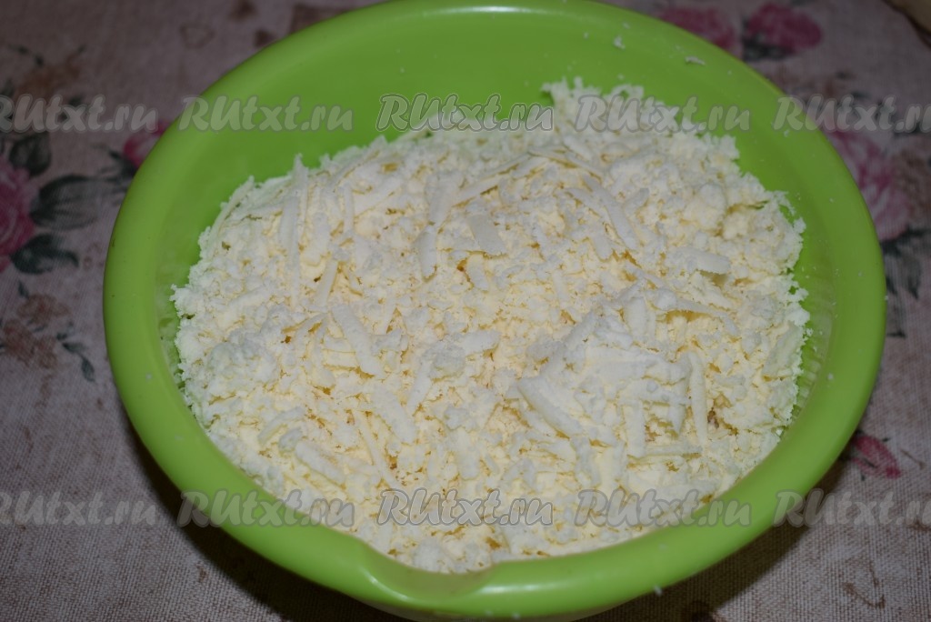 В это время приготовим начинку для наших чебуреков, для этого адыгейский сыр натираем на крупной тёрке.