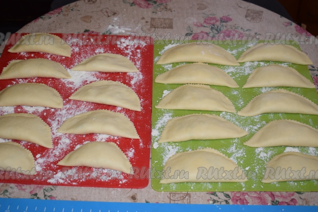Таким образом лепим все чебуреки с адыгейским сыром. Выход по данному рецепту 18-19 штук, так как из обрезков теста получается ещё 2-3 чебурека.