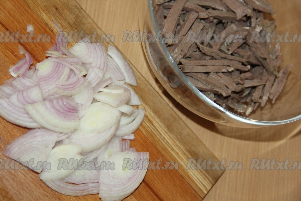 Лук почистить и нарезать на тонкие полукольца.