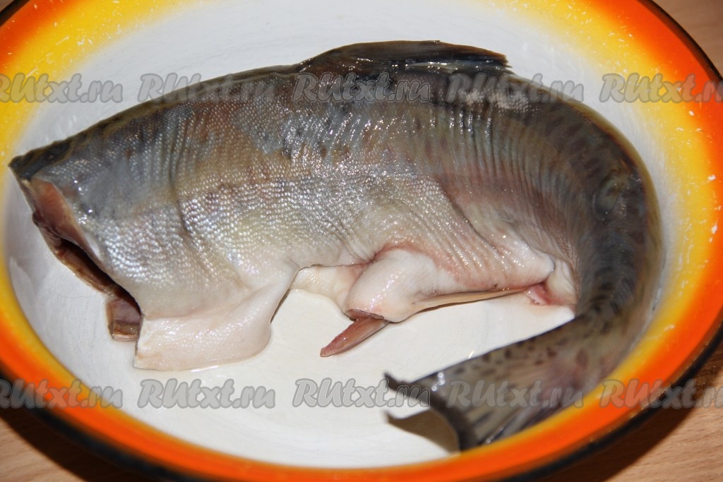 Горбушу, если она заморожена, разморозить, затем промыть под холодной водой, удалить голову и внутренности, убрать плавники и хвост.