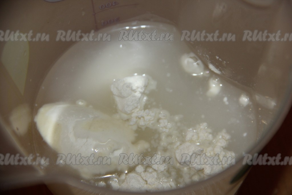 Для приготовления сметанного соуса в отдельной ёмкости соединить сметану и воду, добавить муку, перемешать соус венчиком.