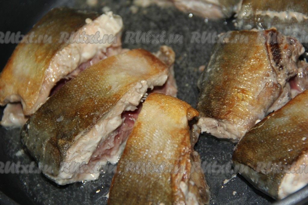 Обжарить кусочки горбуши с двух сторон на сильном огне до золотистого цвета. Золотистую рыбку переложить на тарелку.