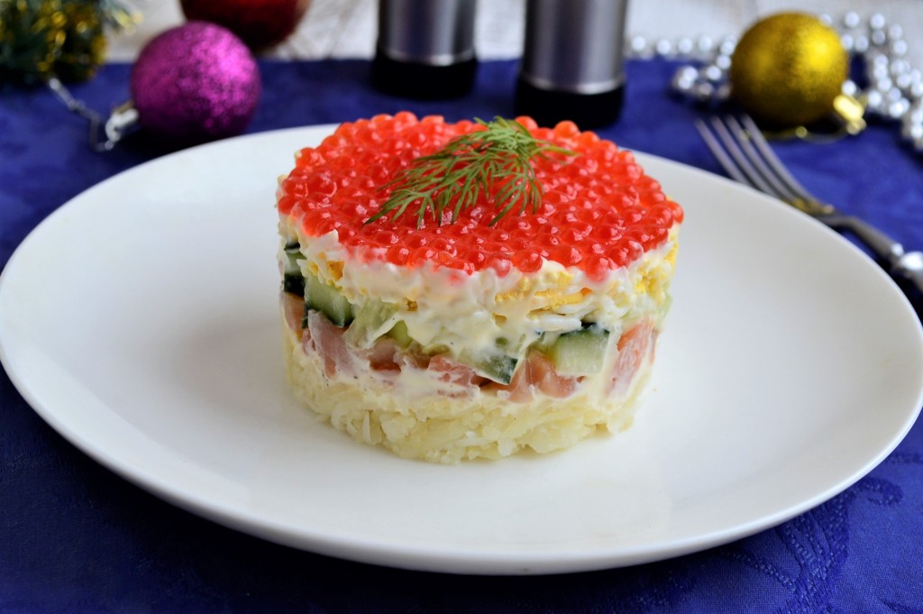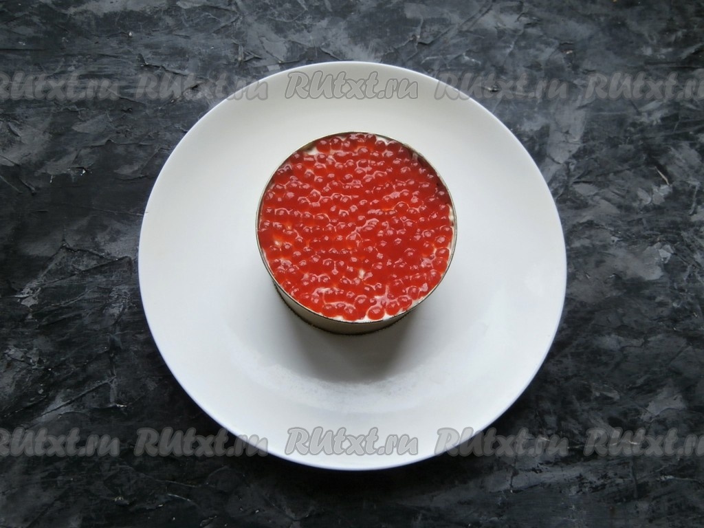 Последним ровным слоем выложить красную икру.