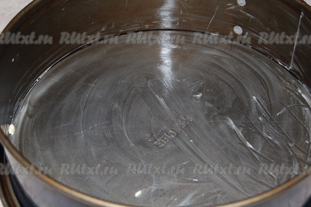 Разъемную форму смазать сливочным маслом и вылить в нее тесто.