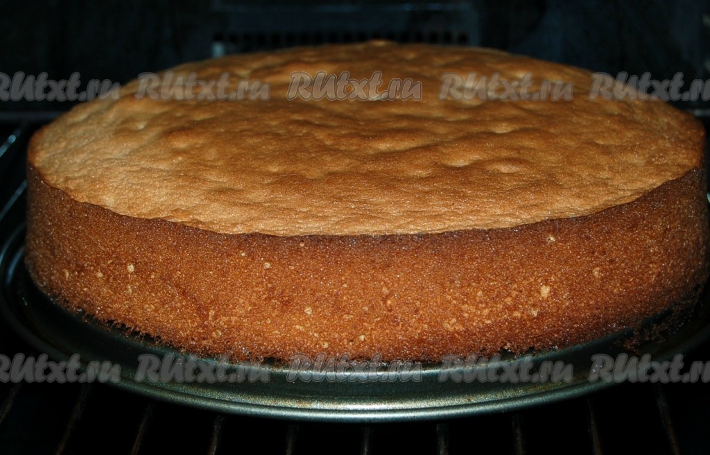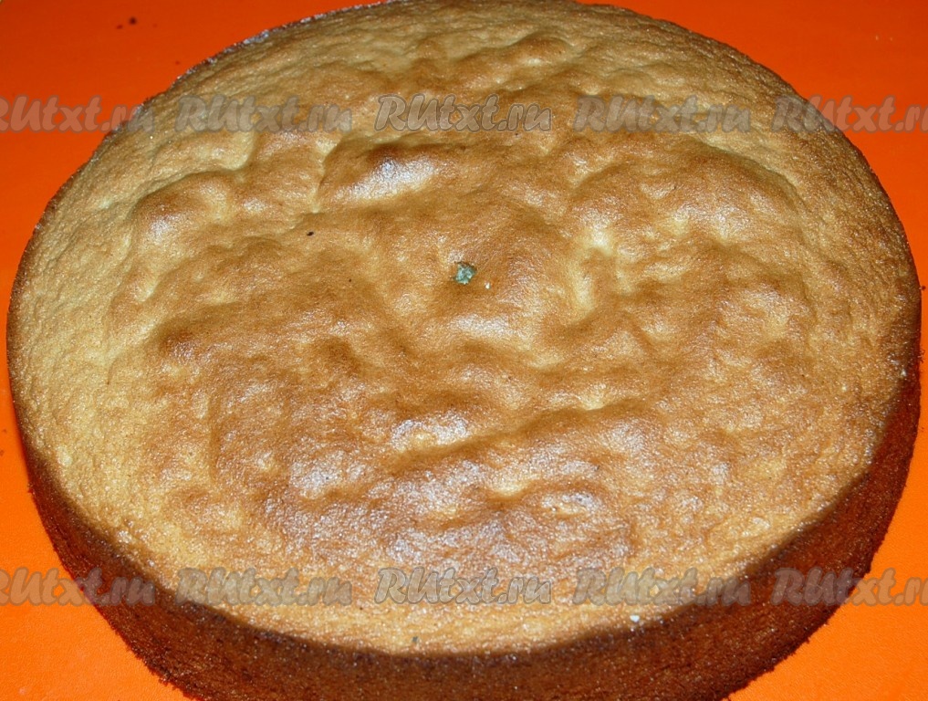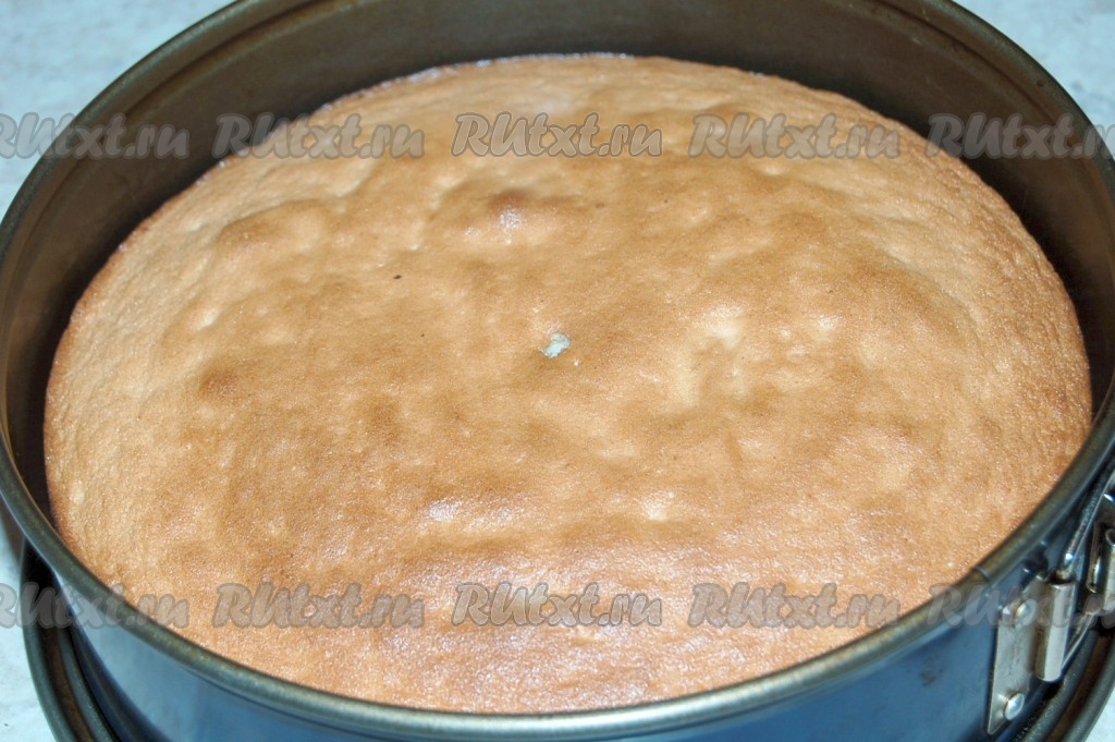 Готовый бисквит вынуть из формы горячим и дать остыть в теплой духовке.