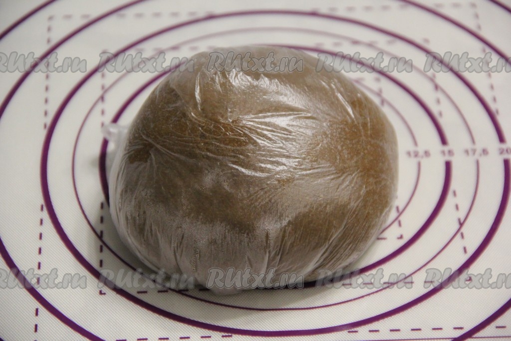 Пряничное тесто завернуть в пакет и поместить в холодильник на 2-3 часа (можно убрать в холодильник и на ночь).