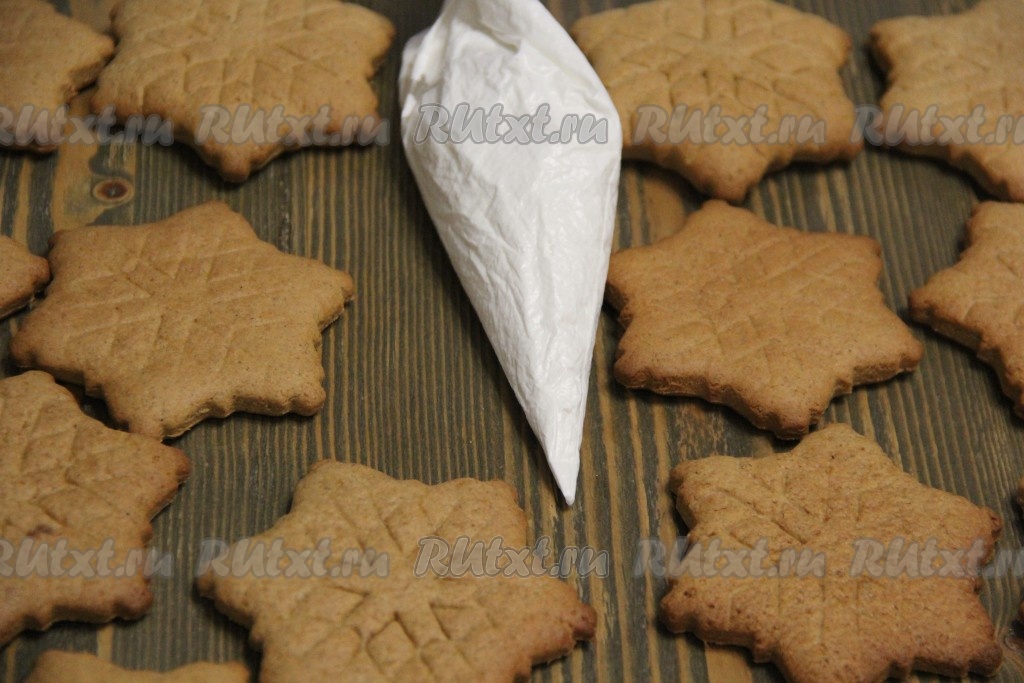 Украсить пряники глазурью, поверх которой можно выложить кондитерскую посыпку, и оставить на сутки для высыхания.