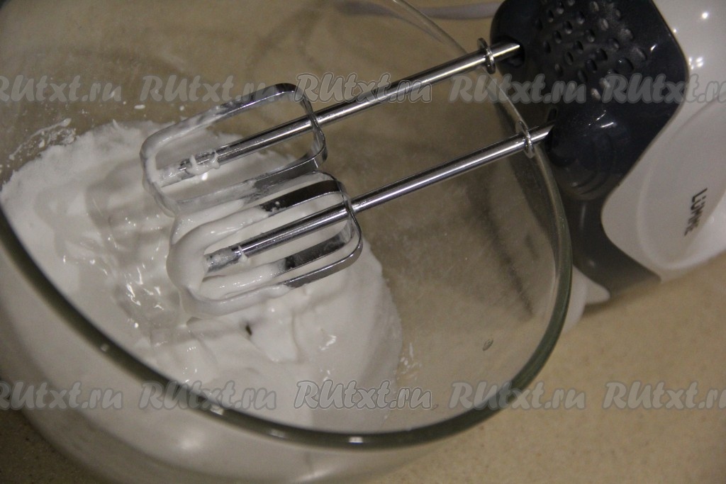 Для приготовления глазури охлаждённый белок взбить миксером в воздушную массу, затем всыпать сахарную пудру и взбивать минут 5 (до устойчивых пиков). В конце взбивания влить лимонный сок и ещё минуту взбивать. Глазурь получится тягучей и однородной.