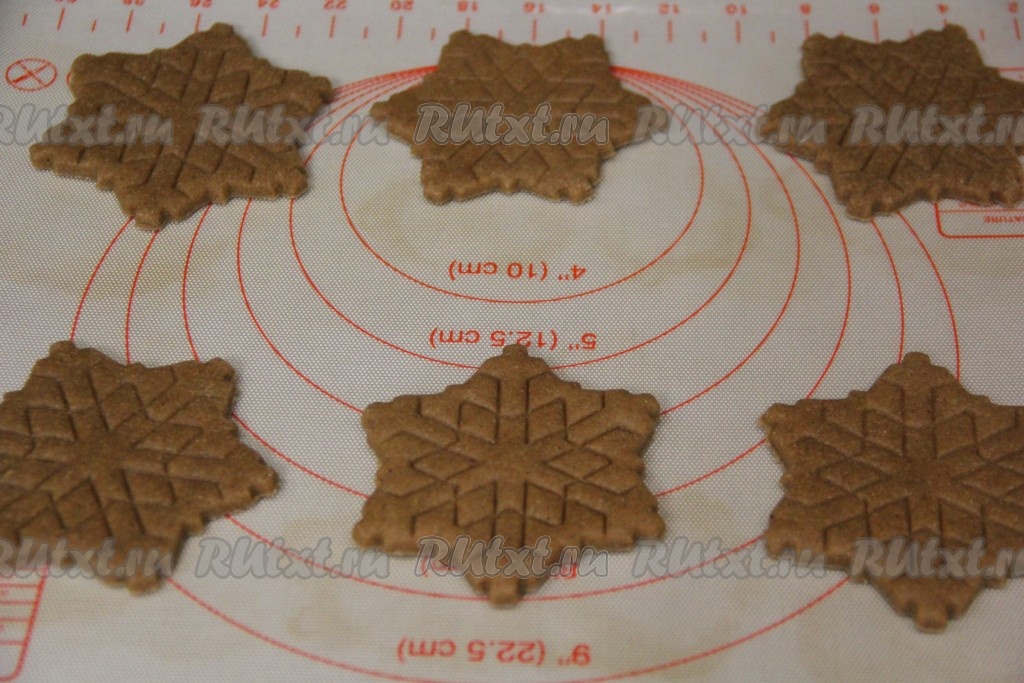 Переложить заготовки пряников на противень, застеленный тефлоновым ковриком (или пергаментом).
