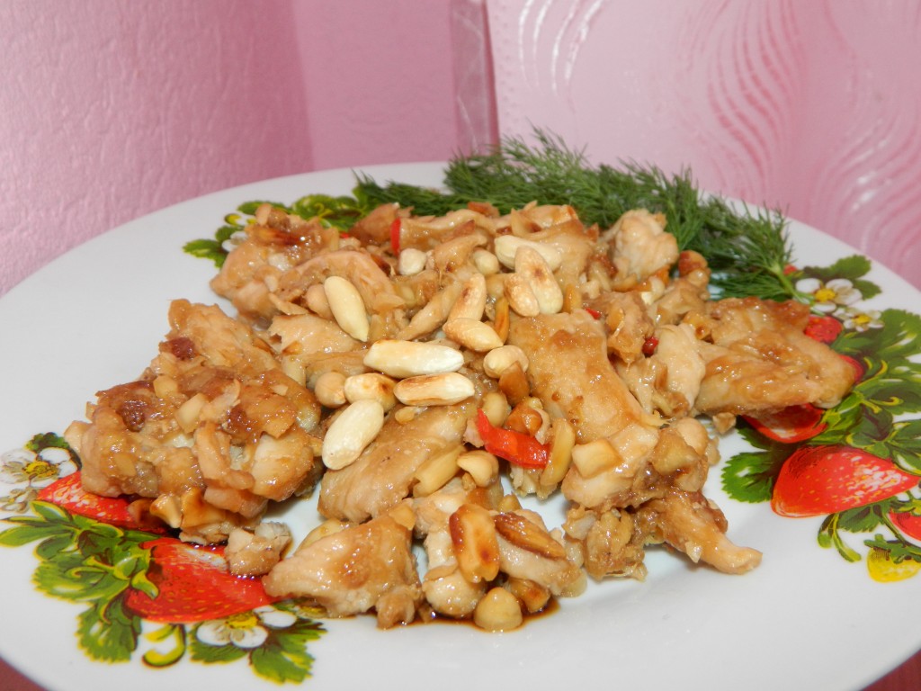 Предлагаю приготовить не замысловатое и вкусное блюдо - курицу с арахисом. Сделала его первый раз и осталась очень довольна.