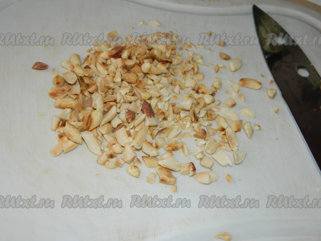 Горсточку арахиса оставляем для украшения, остальной мелко режем.