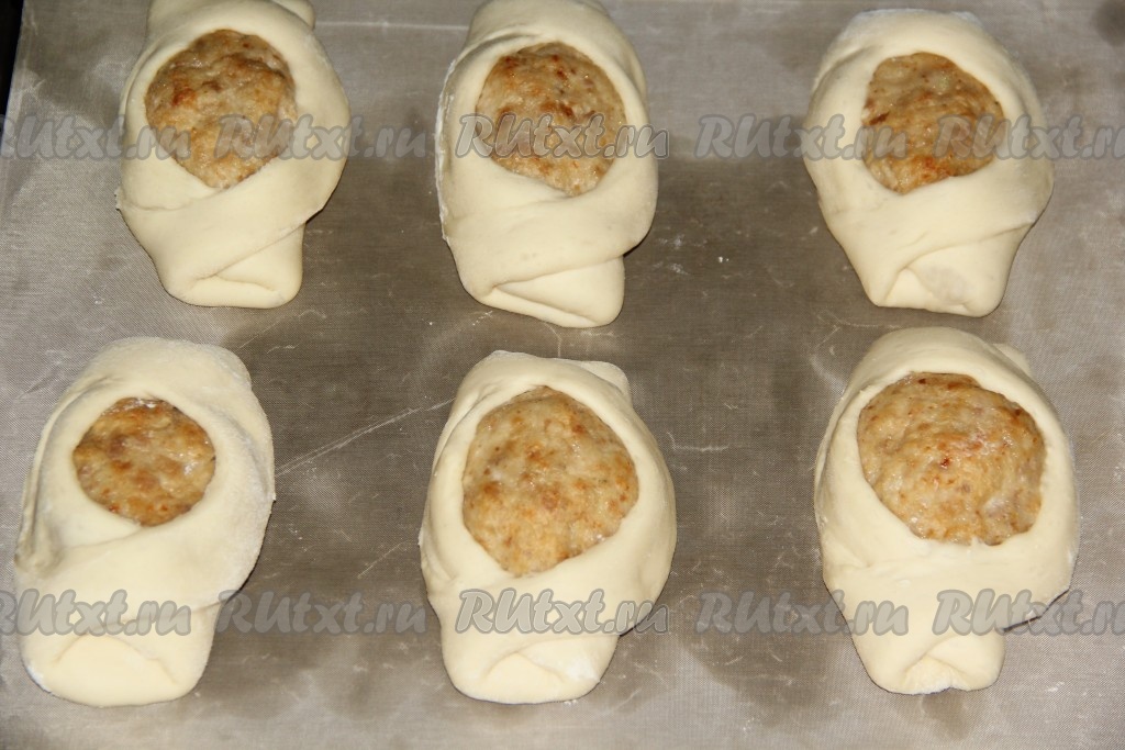 Сначала завернуть одну сторону теста через разрез.