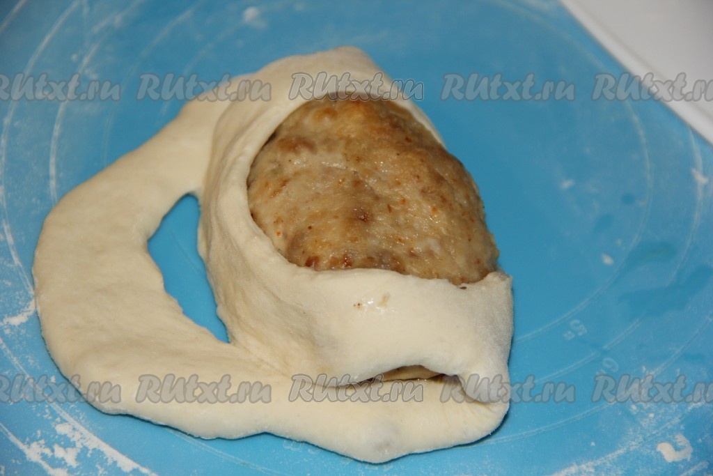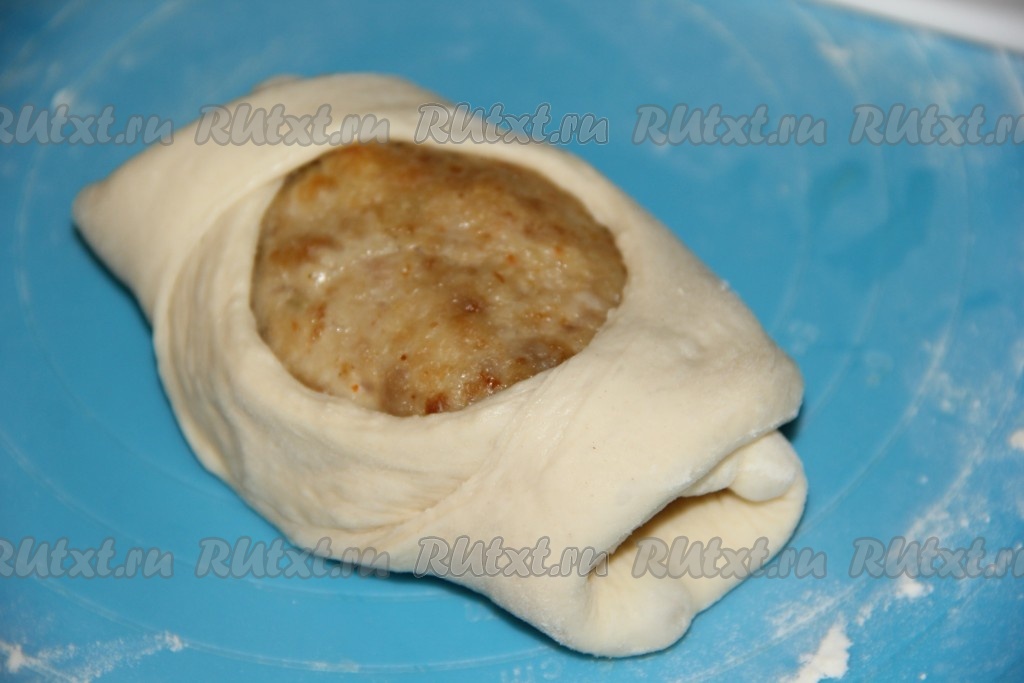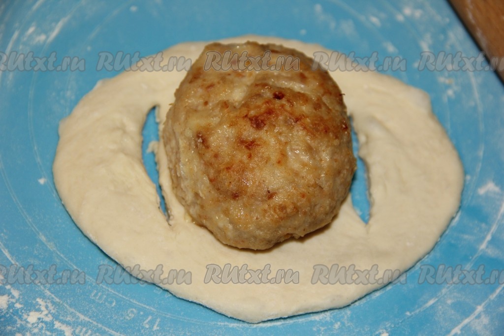На середину теста выложить котлету.