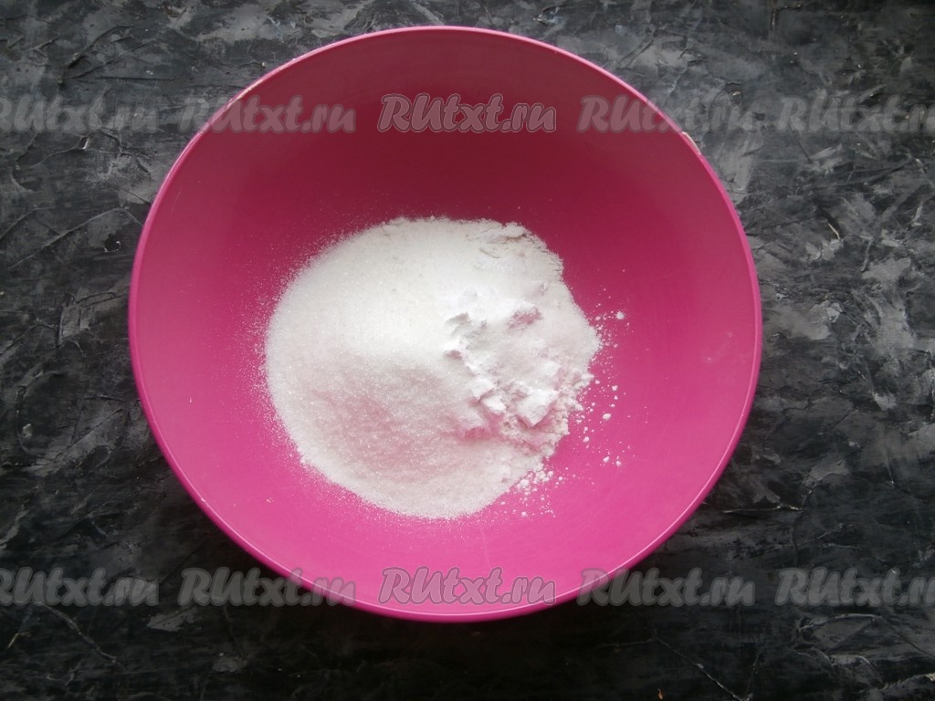 В миске смешать муку, соль, сахар, крахмал и ванильный сахар.