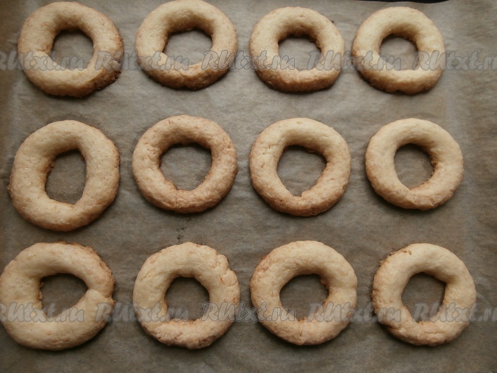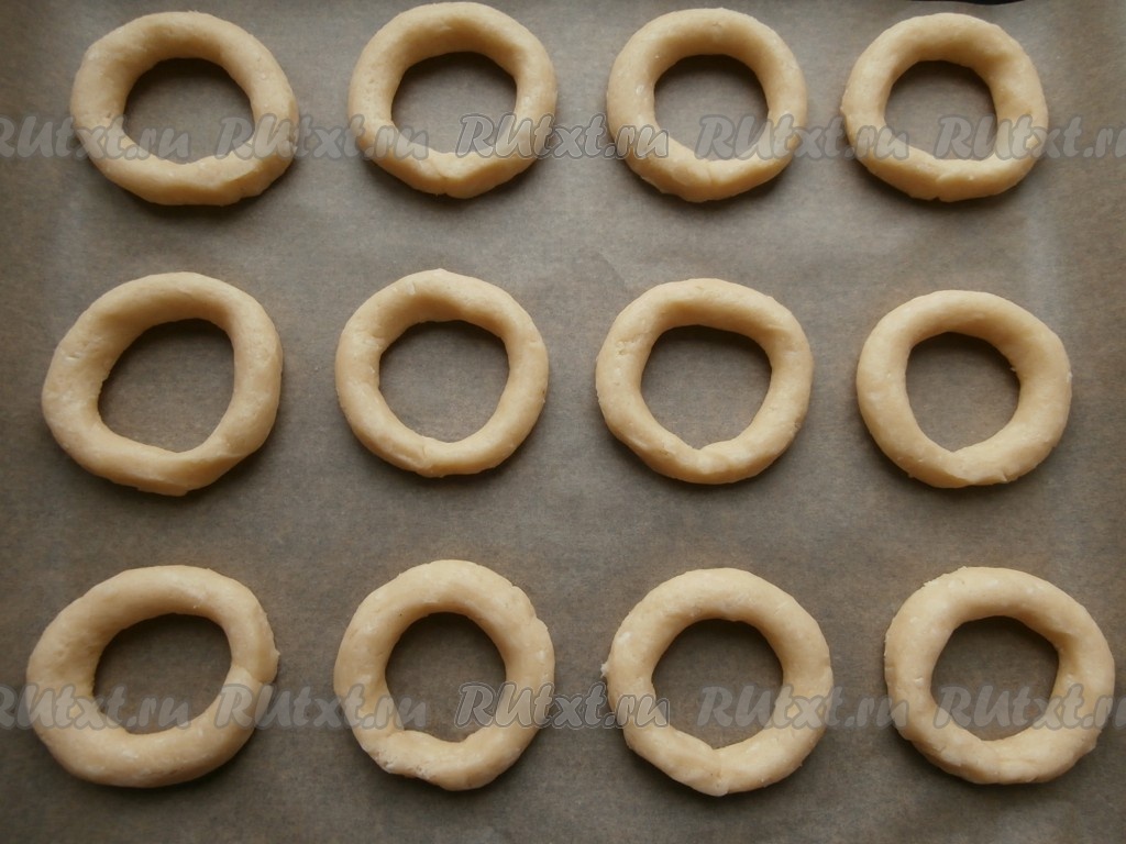 Получившиеся колечки поместить на противень, застеленный пергаментом.
