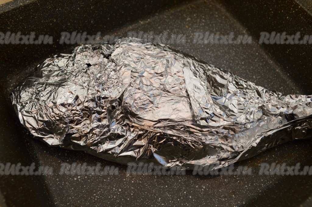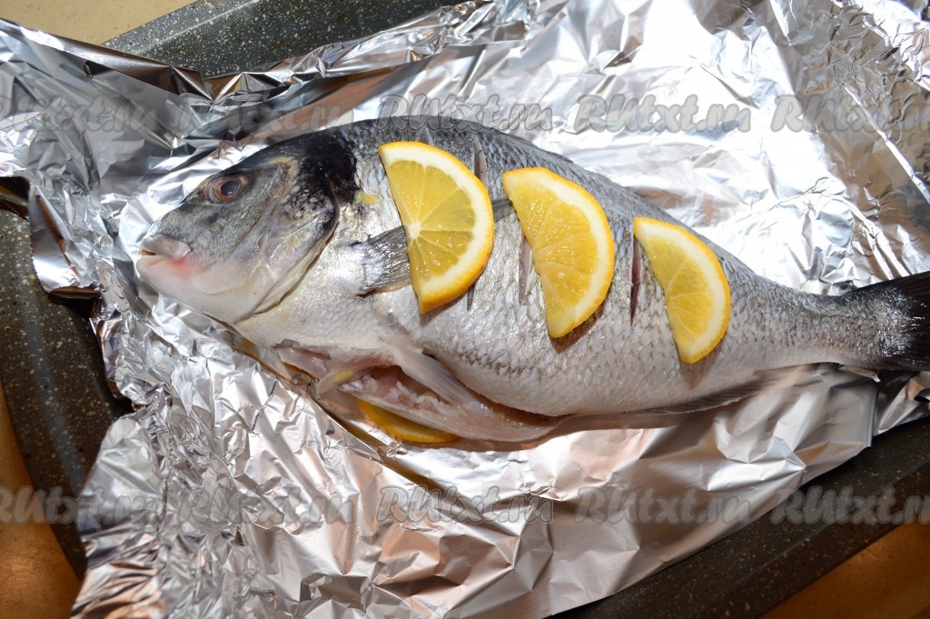 Аккуратно заверните дораду со всех сторон в фольгу. Форму для запекания с дорадой, завёрнутой в фольгу, отправьте в разогретую до 180-190 градусов духовку на 30-35 минут.