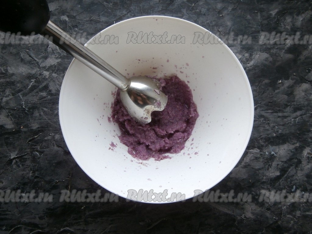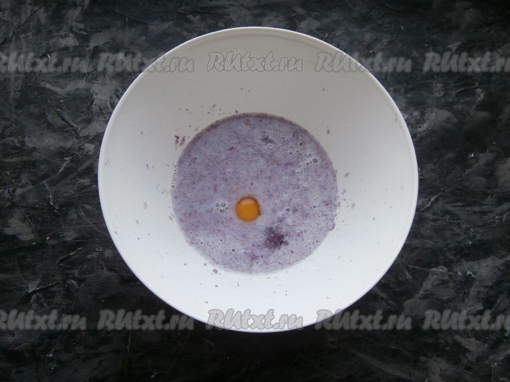 К пекинской капусте, измельчённой в пюре, влить молоко с водой, добавить яйцо.