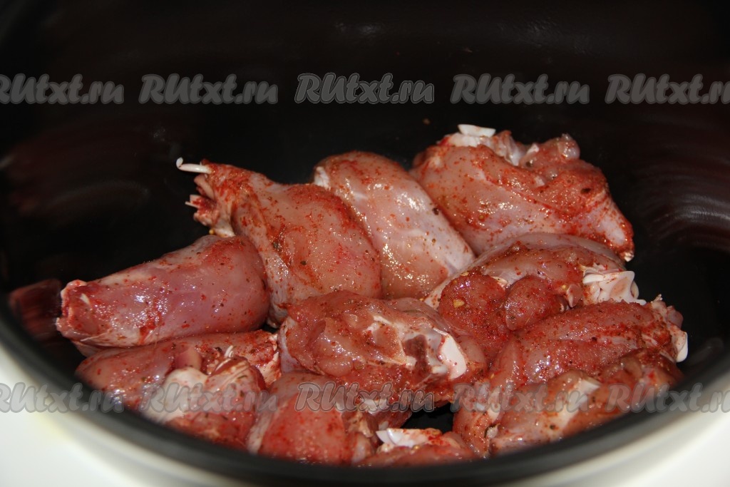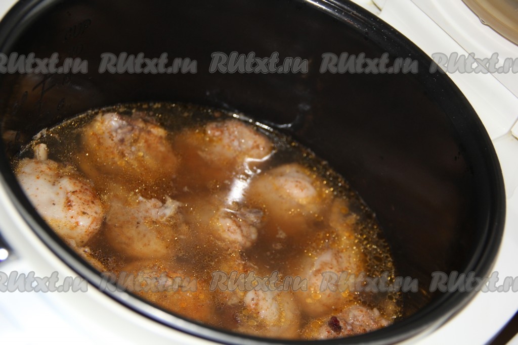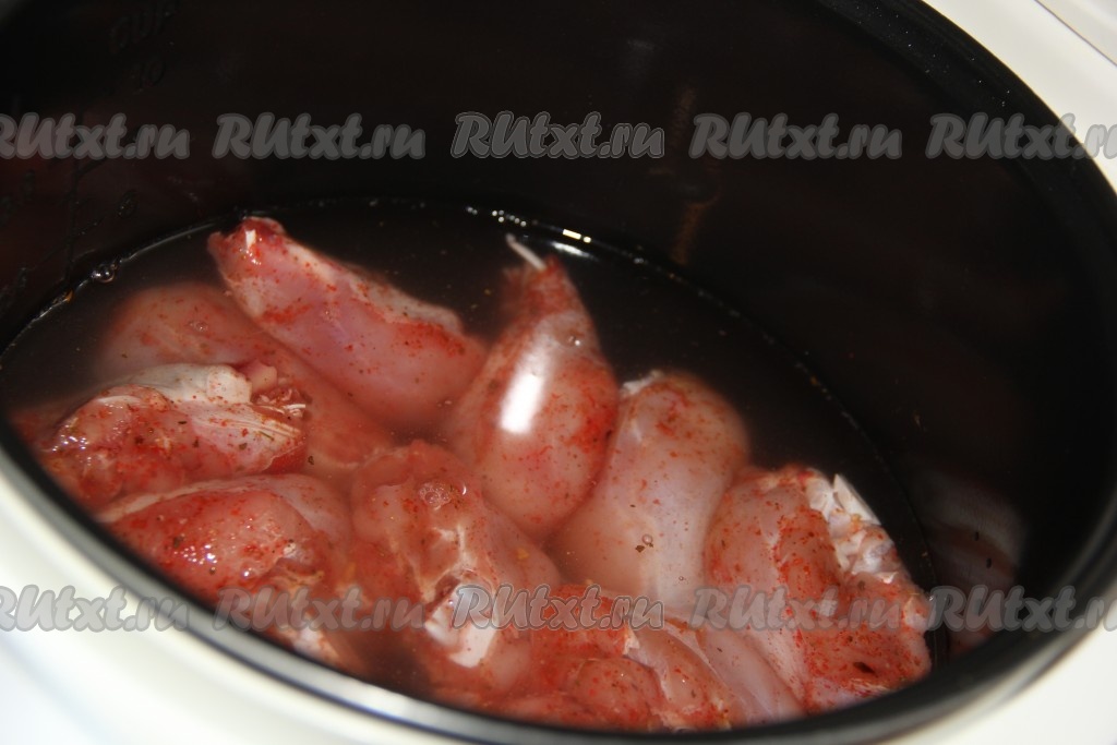 Замаринованные ножки выложить в чашу мультиварки.