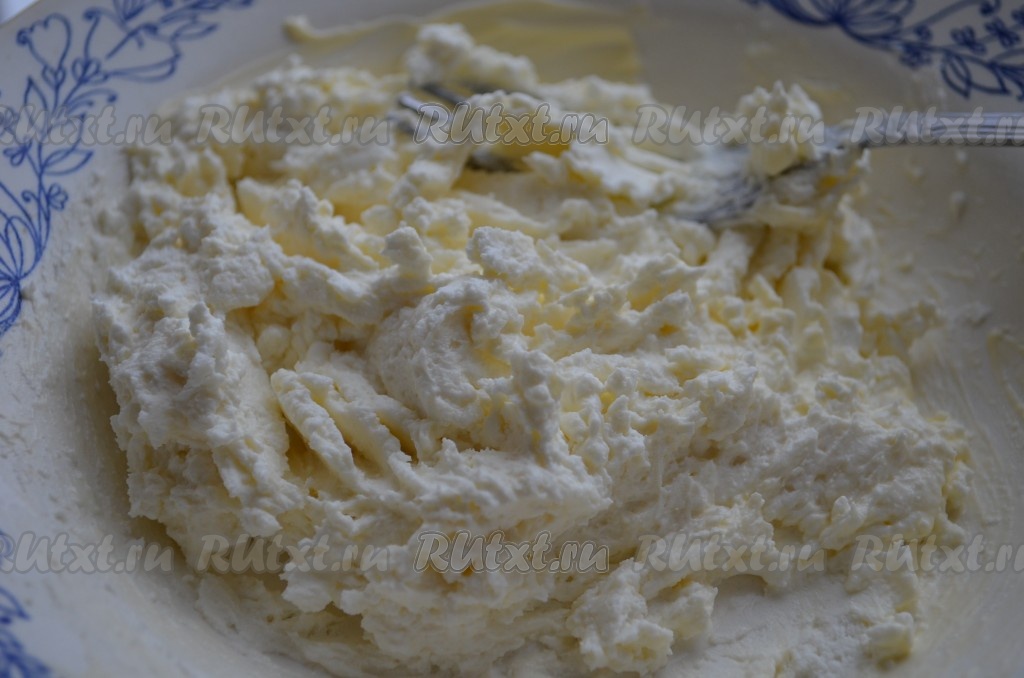 Творог перемешиваем со сметаной и солью.