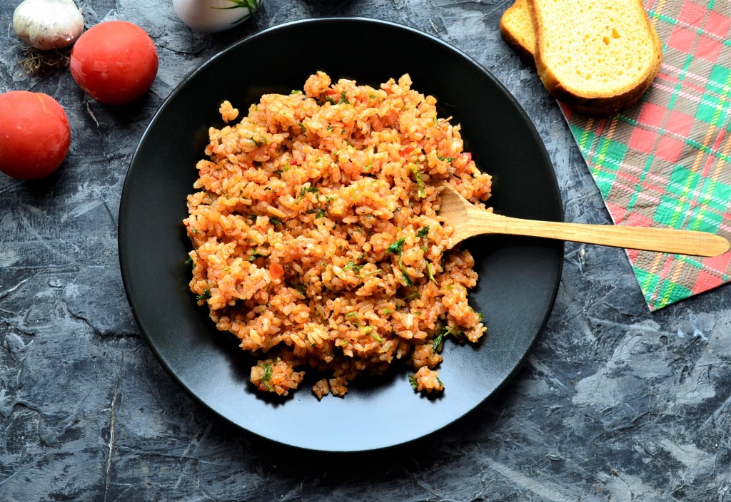Подавать очень вкусный рис, приготовленный с помидорами на сковороде, в горячем виде. Такой аппетитный, рассыпчатый гарнир станет отличным дополнением к мясным и рыбным блюдам!