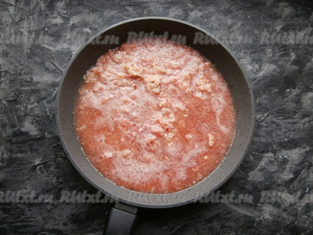 Далее в сковороду с рисом вылить получившийся томатный соус и оставшуюся воду.