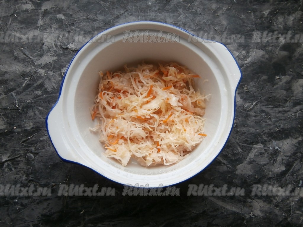 Картошку, чеснок и лук очистить. Квашеную капусту немного измельчить и поместить в кастрюлю, подходящую для готовки в духовке.