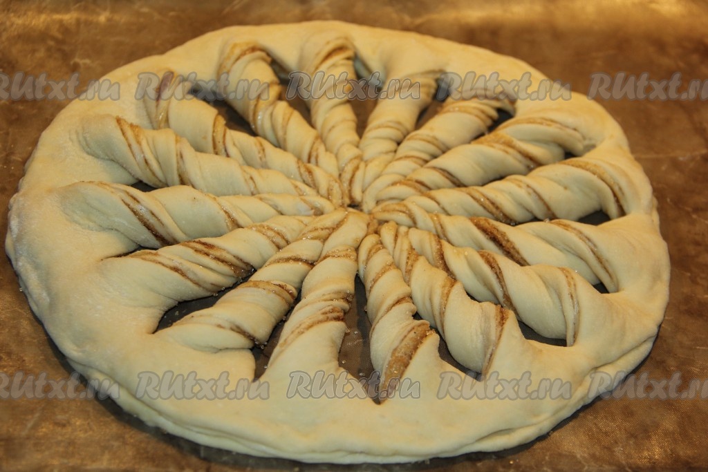 Каждый сегмент перекрутить несколько раз. Оставить дрожжевой пирог с корицей под полотенцем на 30-40 минут для подхода.