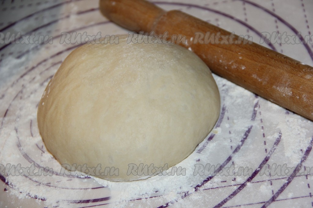 Поднявшееся тесто выложить на поверхность, хорошо присыпанную мукой, и обмять.