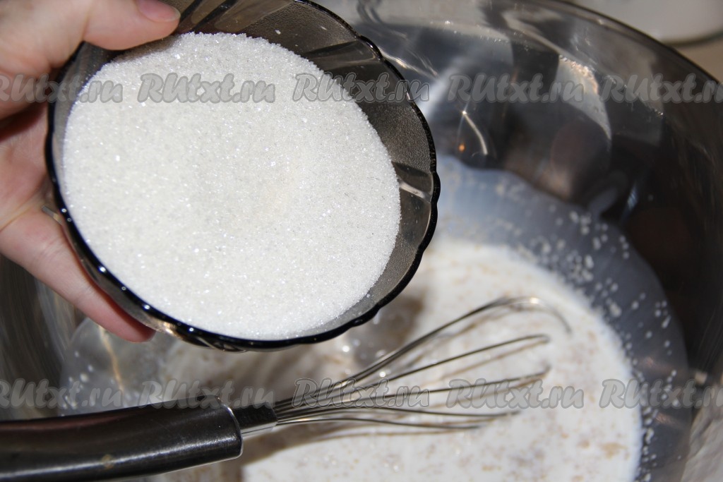 Затем всыпать сахар и перемешать венчиком.