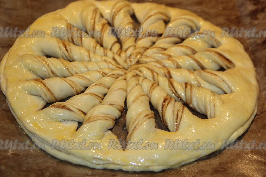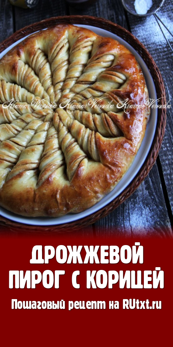 Предлагаю испечь красивый и вкусный дрожжевой пирог с начинкой из корицы и сахара. Дрожжевое тесто можно замесить самостоятельно (как это сделала я), а можно купить в кулинарии. Оформить пирог можно по-разному. Мне захотелось оформить его в виде жгутиков, сделать это совсем несложно, а в результате получилась нарядная, красивая выпечка. Кстати, вместо корицы и сахара в качестве начинки можно использовать, например, варёную сгущенку или джем, и у вас на столе будет не менее вкусный пирог. Берите отличный рецепт на заметку и готовьте домашнюю выпечку на радость себе и своим близким!