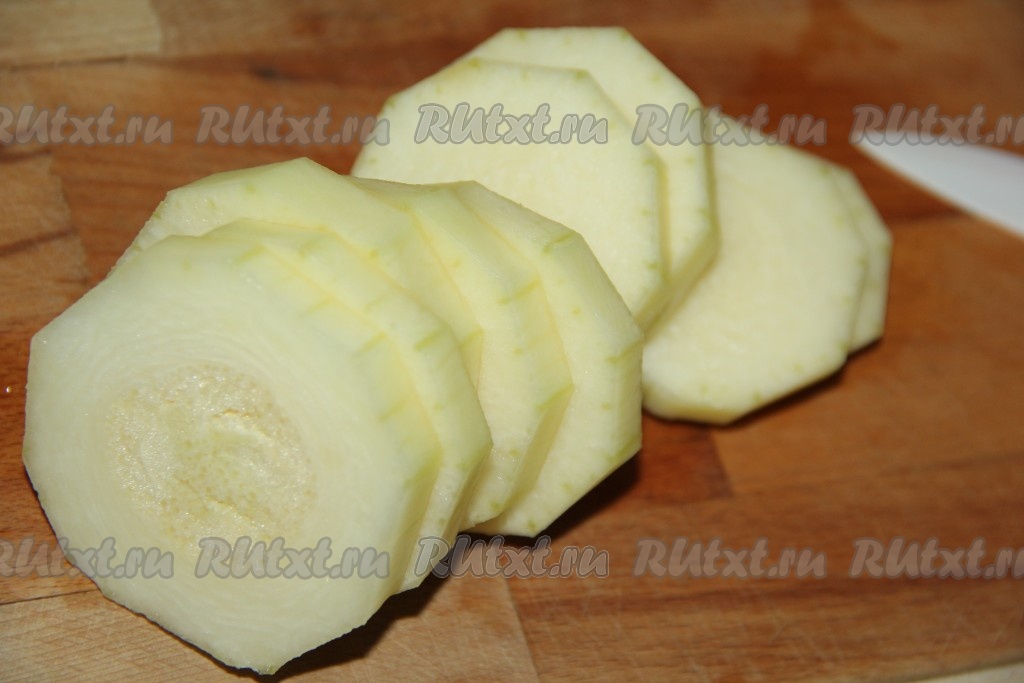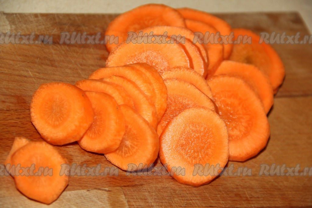 Морковь почистить и нарезать кружочками.