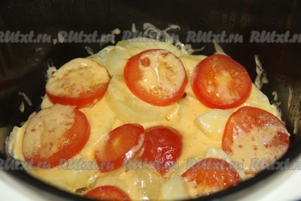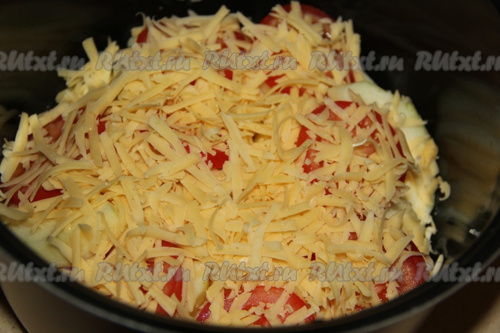 Овощи посыпать натёртым сыром, закрыть крышку мультиварки и выставить режим "Тушение" на 45 минут.