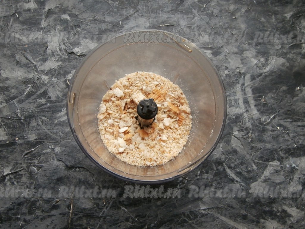 Чёрствый хлеб (или подсушенный) поместить в чашу блендера, измельчить.