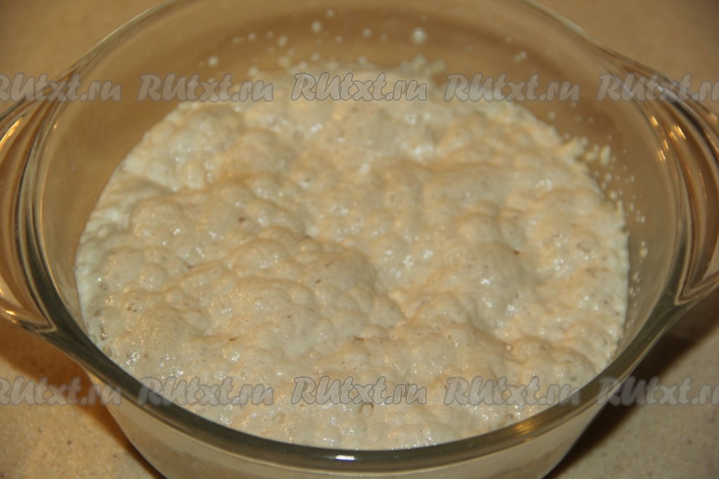 Через 15 минут опара покроется пышной шапкой.