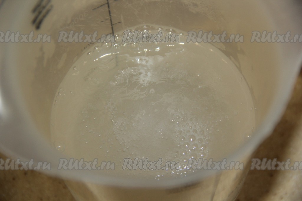Вскипятить 400 миллилитров воды, затем всыпать соду и тщательно перемешать (сода должна раствориться).