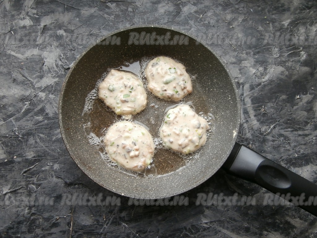 Хорошо разогреть в сковороде растительное масло, затем выкладывать тесто ложкой в виде небольших оладушек.