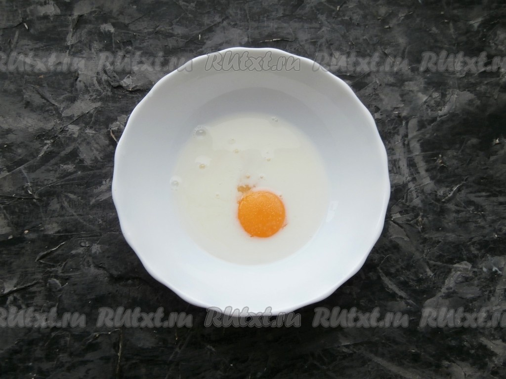 Молоко налить в глубокую миску, добавить сырое яйцо и соль.