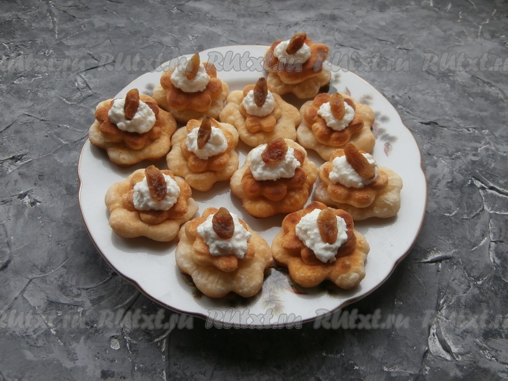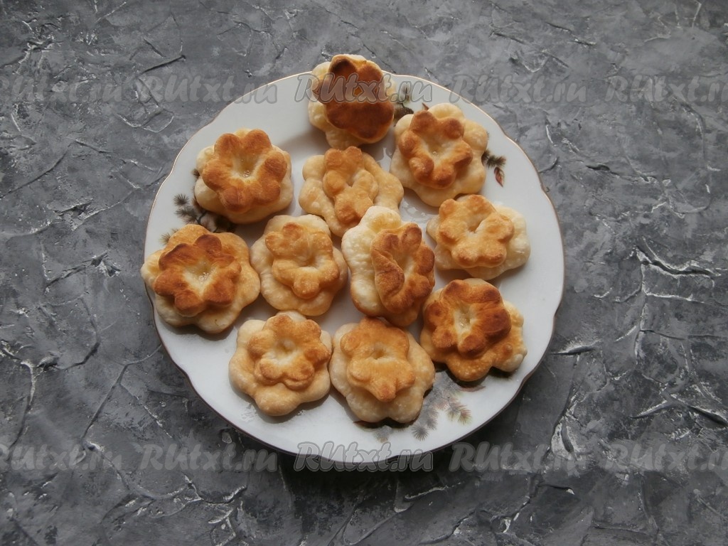 Хочу поделиться с вами замечательным рецептом приготовления пончиков. Формировать их будем в виде цветочков, для этого нам понадобятся формы для вырубки печенья подобающего вида. Такие пончики "Цветочки" очень нравятся деткам, они интересные, красиво выглядят, вкусные и мягкие, немного похожи на слоёные. Сами по себе пончики почти безвкусные, чуточку сладкие, поэтому я советую дополнить их творожной начинкой, которая придаст им более яркий и нежный вкус. Готовятся они просто, из теста, в котором нет ни разрыхлителя, ни соды, ни дрожжей, а получаются отличными, попробуйте!