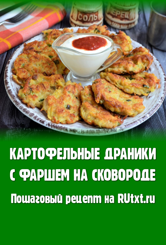 Вкусные, мягкие картофельные драники, приготовленные с фаршем на сковороде, подавать горячими со сметаной, любимым соусом или кетчупом.