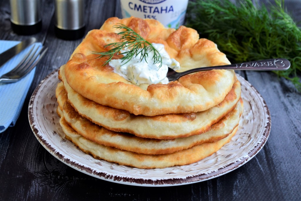 Очень вкусные и пышные лепёшки, приготовленные на рассоле на сковороде, подавать горячими со сметанно-огуречным соусом.