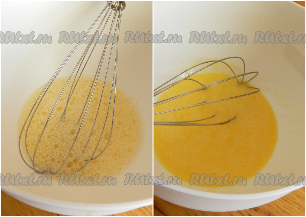 Яйцо взбить (примерно 1/4 отложить для смазывания лепёшек), размешать с солью, сахаром и водой. Добавить размягченное сливочное масло, все взбить до однородности.