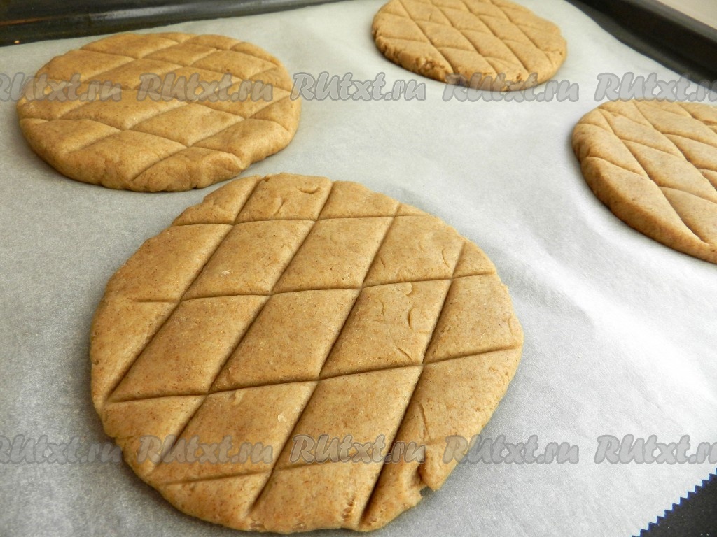 Раскатать тесто в круглые лепешки диаметром примерно 10-11 см, выложить на противень, застеленный бумагой для выпечки. На поверхности ржаных лепешек сделать насечки в виде сеточки. Смазать ржаные лепешки яйцом. Выпекать лепешки в разогретой до 200 градусов духовке 25-30 минут.