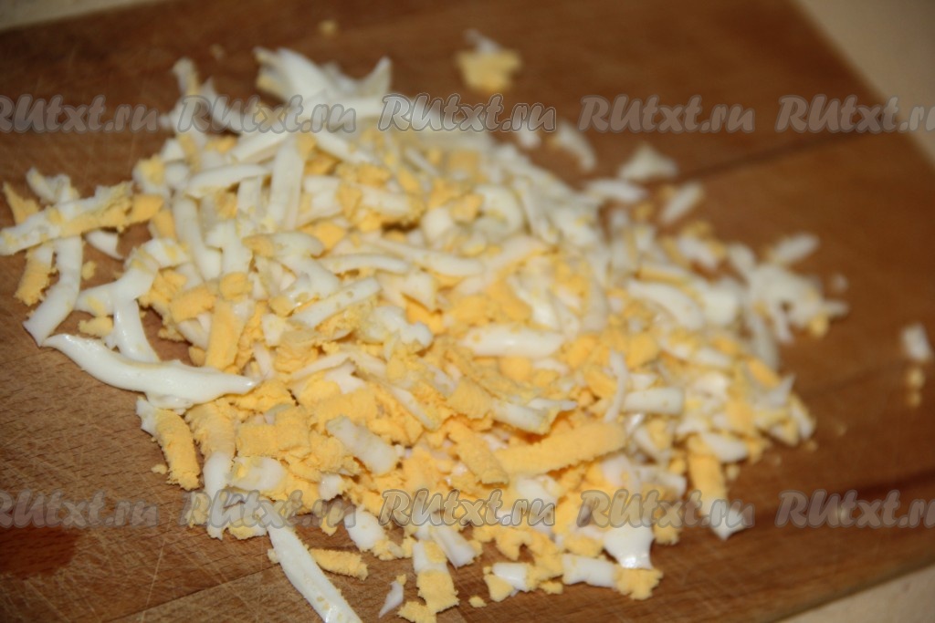 Морковку и лук очистить. Куриные яйца сварить заранее (варить 8-10 минут с момента закипания), дать им остыть и очистить. Скумбрию промыть под проточной водой. Удалить голову и внутренности, отрезать хвост и плавники. Разрезать скумбрию по брюшку, вынуть основную хребтовую кость.
