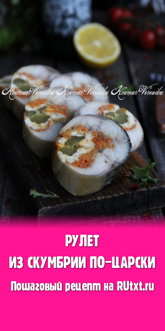 Предлагаю приготовить вкусный и яркий рулет из скумбрии по-царски. Это блюдо станет отличной холодной закуской для праздничного стола. Рулет получается нежнейшим, он очень красиво выглядит в разрезе. Скумбрию для этого блюда можно купить замороженную, а затем разморозить при комнатной температуре. Готовится это блюдо достаточно несложно, а получается и эффектным, и очень вкусным!