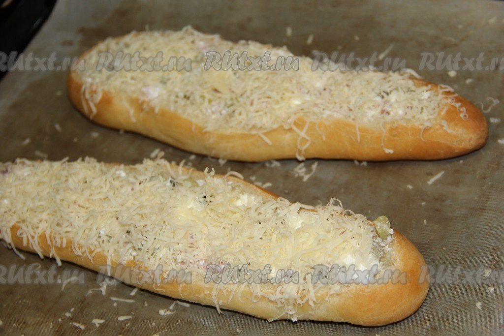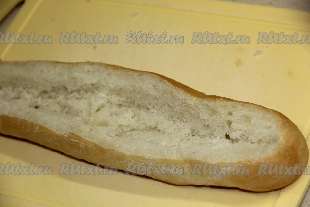 У каждого багета (я брала 2 небольших багета) срезать верхушку и удалить мякиш. У нас получатся вот такие лодочки.